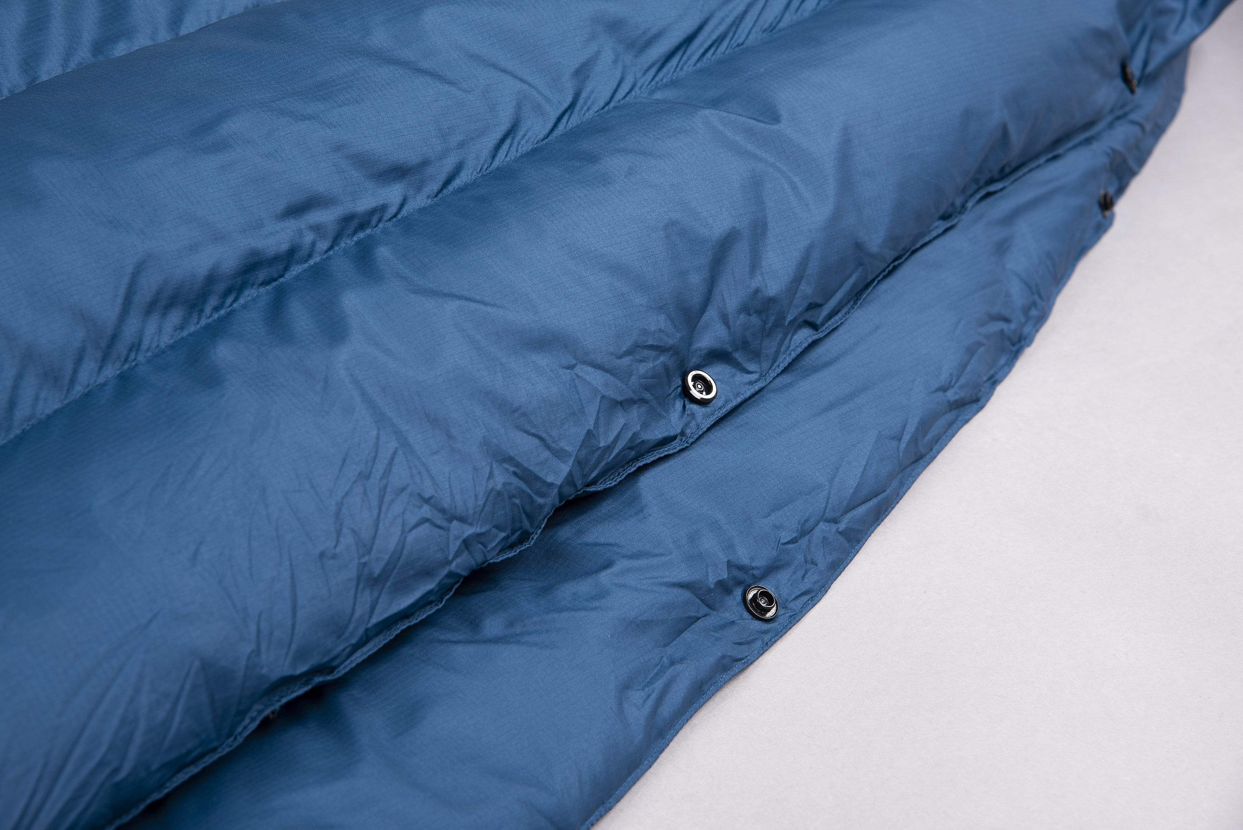 The corner attachments allow Cloud Cover to be mated with another quilt* or attached to itself to create a more traditional sleeping bag shape. A drawcord on either end can be tightened to keep the warmth in when the temperature drops.