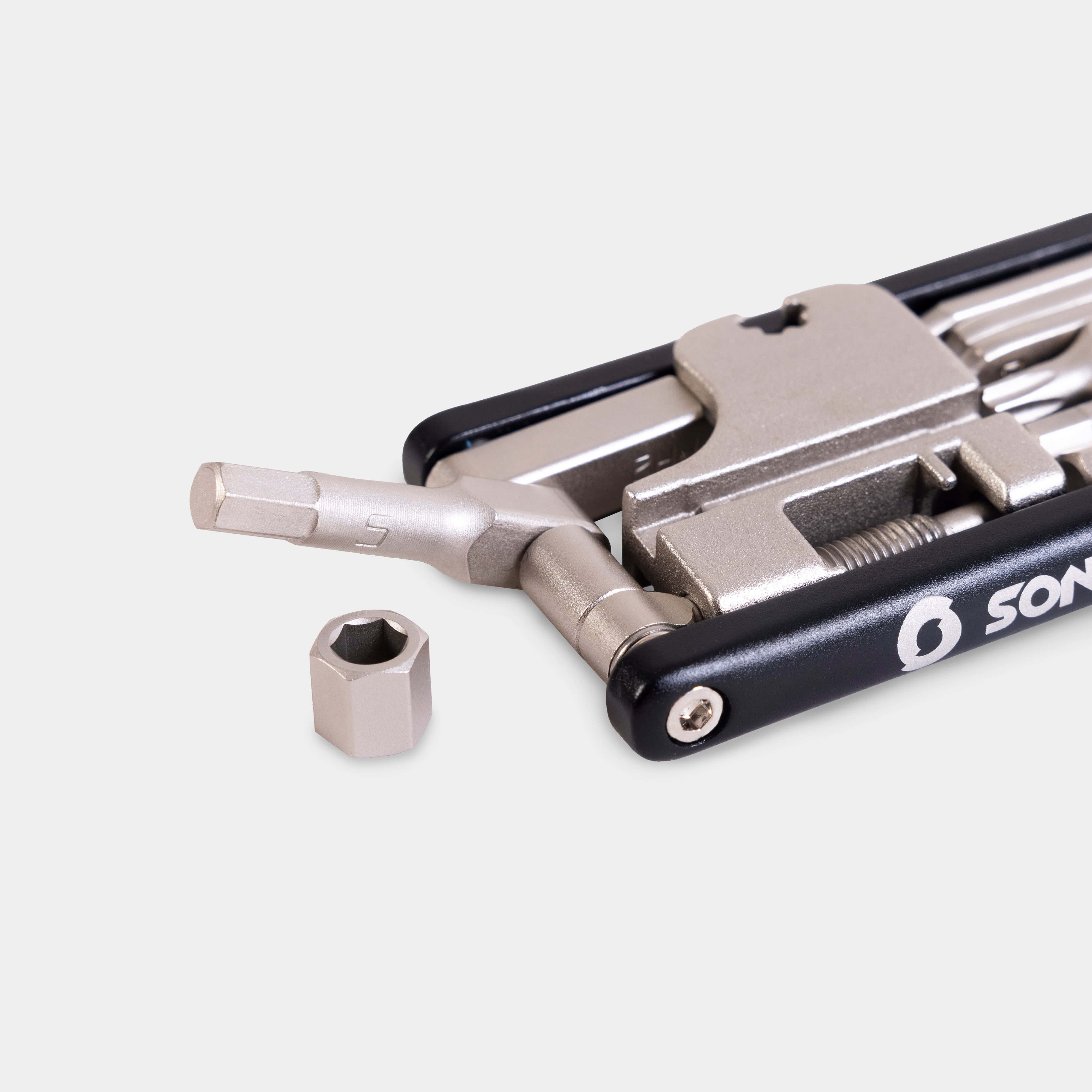 This slimline multi-tool features the 16 important tools to service your bike on the trail.